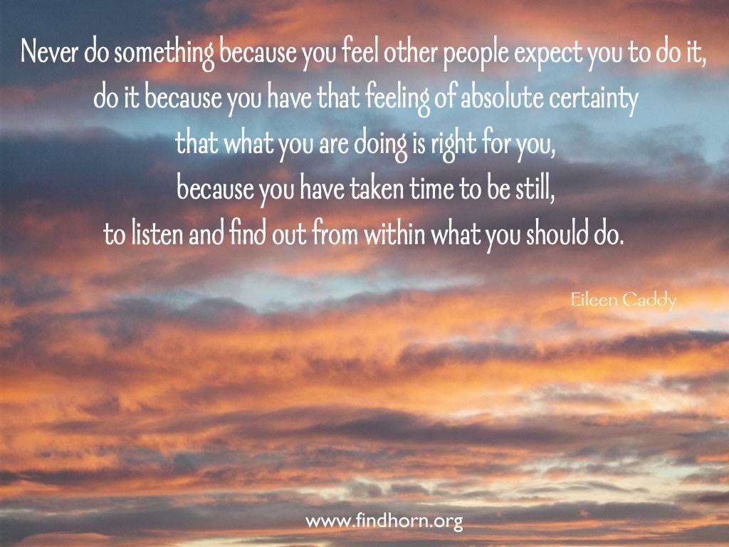 “Never do something because you feel other people expect you to do it, do it because you have that feeling of absolute certainty that what you are doing is right for you, because you have taken the time to be still, to listen and find out from within what you should do.”
